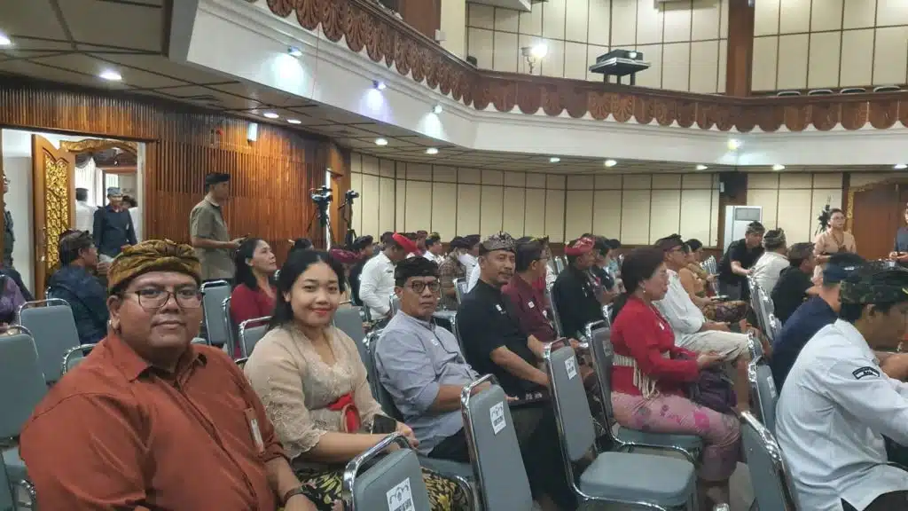 (Kiri : Dewa Indra/ Sekda Bali , tengah : Widiana Karya/Dirut Jamkrida, Kanan : Agus Wirajaya/Ketua KI Bali)