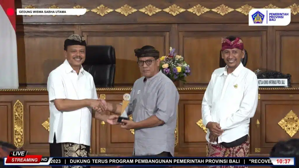 Denpasar, Kamis (28/12) PT Jamkrida Bali Mandara (Perseroda)/ Jamkrida Bali kembali menerima penghargaan keterbukaan informasi publik dari Komisi Informasi (KI) Provinsi Bali secara dua kali berturut turut. Jamkrida Bali mendapat penghargaan tertinggi yaitu Badan Usaha Milik Daerah (BUMD) Kualifikasi Badan Publik Informatif dimana dalam penganugrahan ini terdapat 4 nominasi yaitu informatif, menuju informatif, cukup informatif dan kurang informatif. Penganugrahan diserahkan oleh Pj. Gubernur Bali Drs. Sang Made Mahendra Jaya., MH yang dalam kesempatan ini diwakilkan oleh Sekretaris Daerah (Sekda) Provinsi Bali Drs. Dewa Made Indra., M.Si.